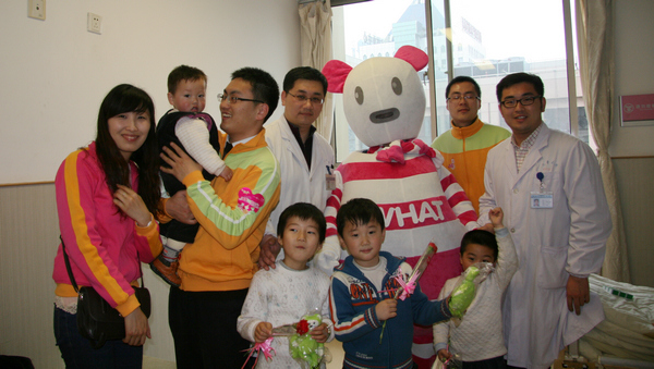 3月22日下午,自拍偷拍 团员青年和来自“孩子王”的玩具精灵一起来到病房,给在院接受治疗的小朋友们赠送了玩具和鲜花,并祝愿他们能够早日康复。(团委)
