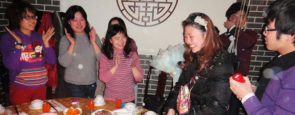 就在这时,周围同事们却没有忘记,大家已经静悄悄地在出谋划策,希望为她举办一场特殊的生日聚会。同事们各有分工,早早预定了单位附近的饭店包间,鲜花、蛋糕和礼物,还有有心的同事买来了彩带、冷焰火和气球,将饭店的包间装点得十分喜庆温馨。为了给她一个惊喜,同事们都没有透露任何细节,而只是编造了一个举办迎春聚餐的“谎言”。