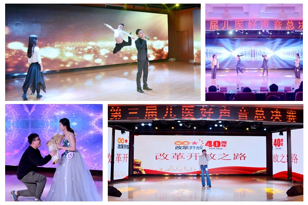 11月21日,院工会举办以“纪念改革开放四十周年”为主题的第三届儿医好声音大赛。在各分工会的精心组织和大力支持下共有近百名选手参加,经过三场精彩纷呈的预赛选出前二十名选手进行决赛。12月21日晚,决赛在财务科季承、潘可深情对唱《无间道》中拉开了帷幕;接着来自318病区的葛静放声高歌一曲《黄土高坡》,再次勾起人们对充满理想的八十年代美好回忆,高亢豪放的歌声,昂扬的生命激情,改变人生命运的热望在无尽思索中滚滚向前;随后口腔科章辉穿着喇叭裤和花格子衬衫、戴着蛤蟆镜烫着一头卷发闪亮登场,仿佛一下回到了九十年代初那个朝气蓬勃的时光,经过精心制作的视频,经典老歌的串烧、熟悉的一幅幅画面,勾起我们对儿时的无尽回忆,和小朋友搞笑的舞蹈互动又引来阵阵欢声笑语,将大赛的气氛推向高潮;来自急诊的张萍深情演唱《只要平凡》,返璞归真的唱腔,娓娓道来的方式,当背景中放出一张张医护人员的工作照片时,真切地感受到平凡中的伟大,“有时去治愈、常常去帮助、总是去安慰”道出了她内心最想说的话。最后在来自门诊部办公室富卉演唱的《喜欢你》中圆满落幕。大赛的成功举办为职工提供了展现艺术特长的平台,丰富了职工的业余文化生活,体现了儿医人团结、和谐、健康、向上的精神风貌,有力促进了医的文化建设。