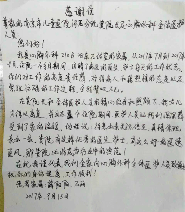 感谢信_210B(1/2)病区(心胸外科)_20170915_莫绪明及全体医护人员