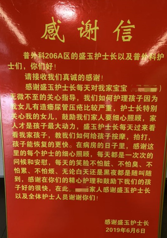 感谢盛玉护士长及全体护士