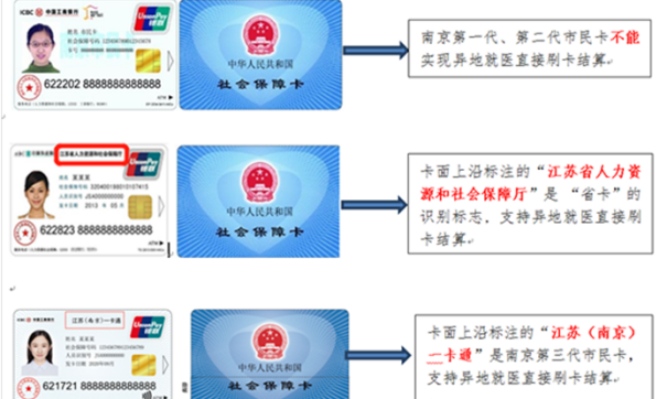 江苏省社会保障卡(简称“省卡”)以及现行江苏(南京)一卡通(简称“三代卡”)均可实现异地联网刷卡结算。