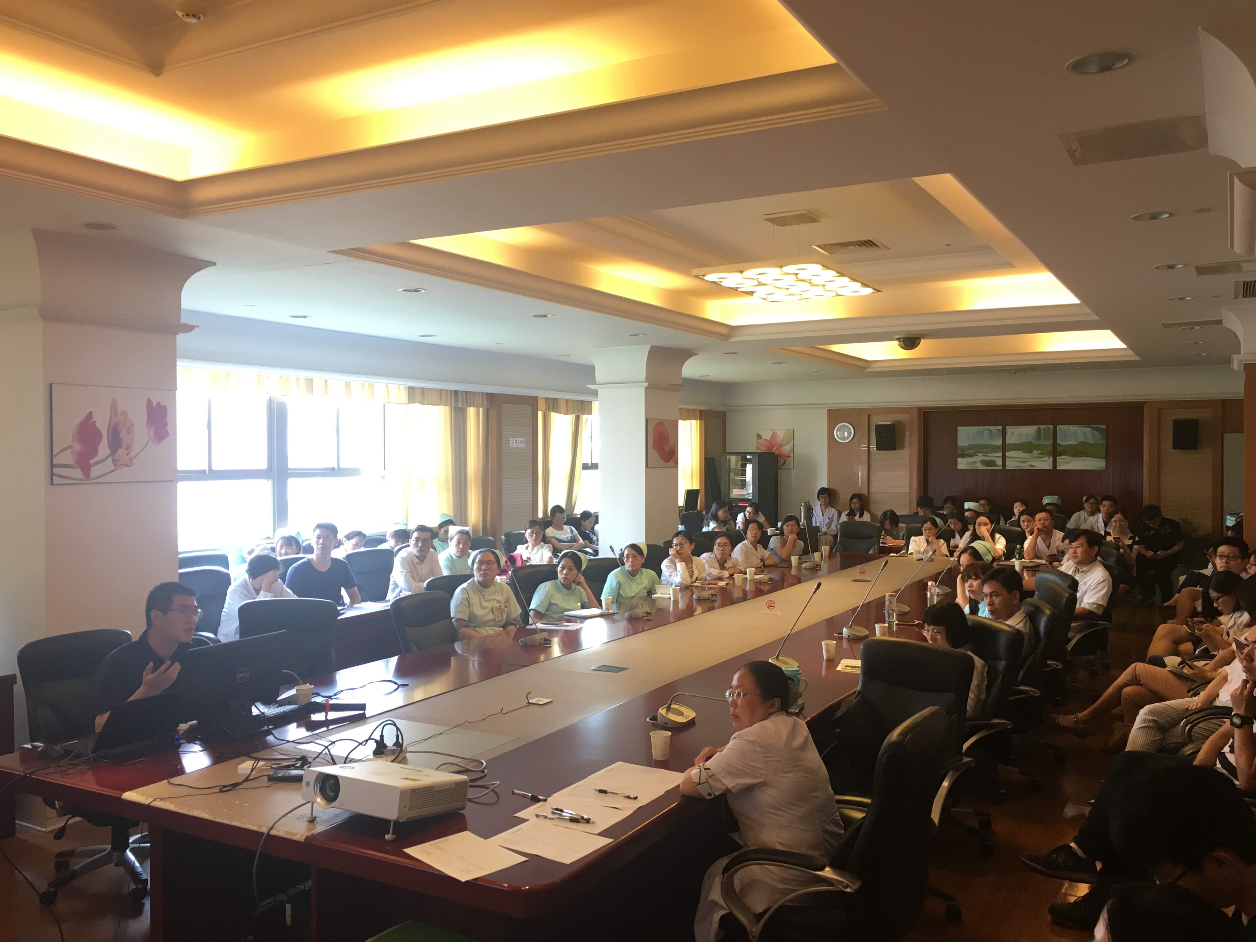 李建民教授从基因编辑、构建动物疾病模型及其在临床科研中的应用案例向参会人员传授方法和经验;医渡云医学部宋黎博士及其同事向大家介绍了医渡云大数据医学平台的概况、使用说明以及如何利用该数据平台收集、应用临床数据,开展单中心或多中心临床研究;江苏省转化医学研究院的任大安教授、蒋真博士系统的讲述了有关专利申请的基础知识,通过大量现实案例给参会人员传授医疗专利成果转化的理念。