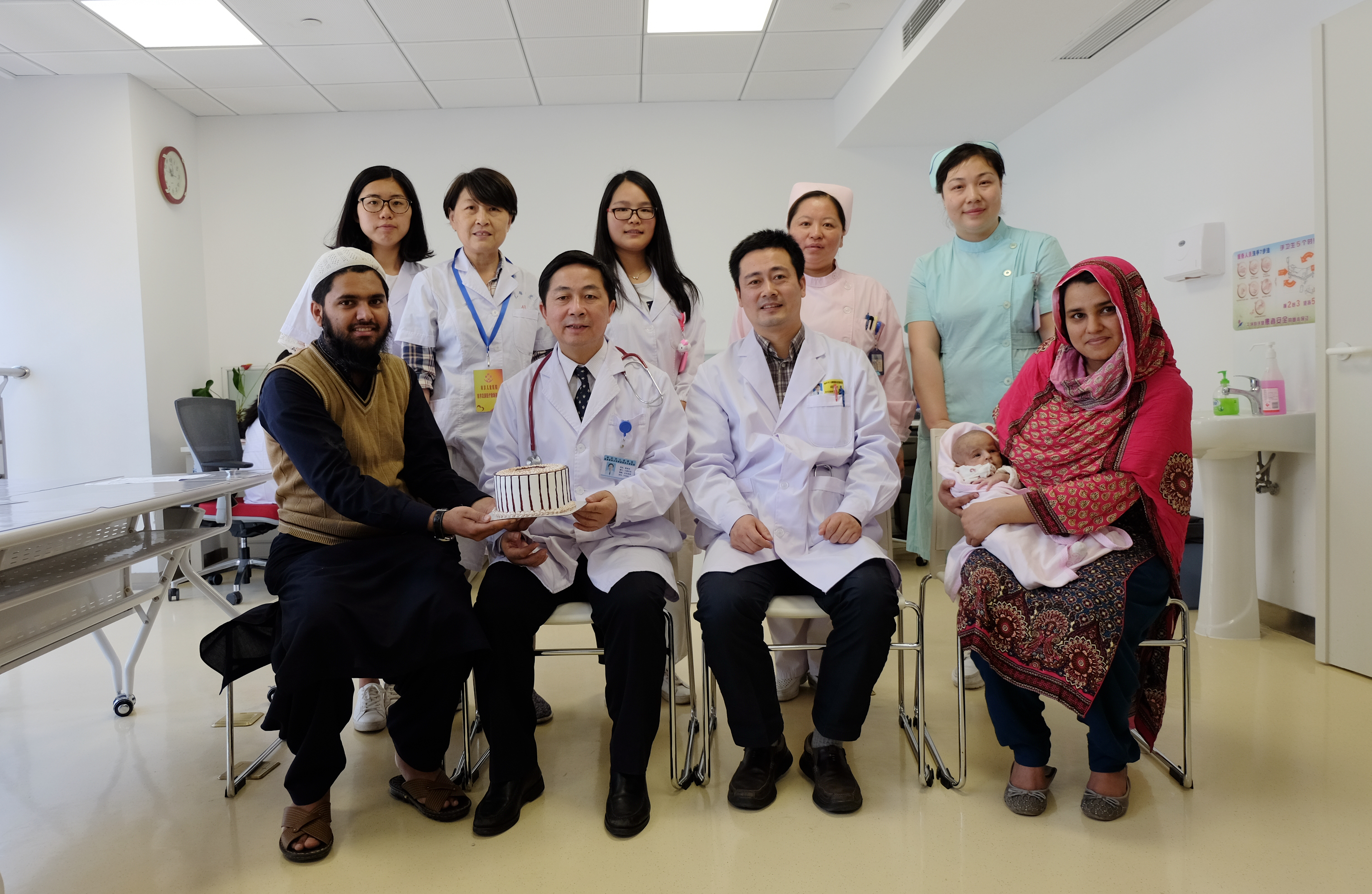 5月19日小默罕默德要出院了,阿萨德订制了生日蛋糕,与心胸外科医护人员和基金会志愿者一起为他儿子庆生,分享这份浓浓的中巴兄弟之情。(社会发展工作部、基金会)