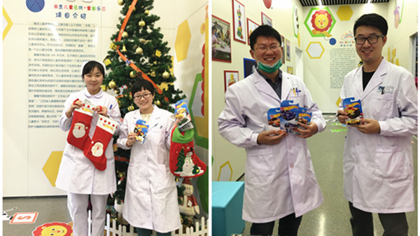 医务社工们携手病区,为病区的孩子们送上精美的礼物,并祝福他们新春快乐,早日康复。