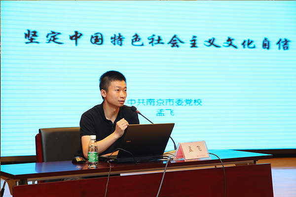 会前,院党委邀请了南京市委党校孟飞教授做了《坚持社会主义文化自信》的十九大精神专题党课。孟飞教授剖析了古今中外的文化内涵和特点,指出中国特色社会主义文化积淀着中华民族最深沉的精神追求,代表着中华民族独特的精神标识,是激励全党全国各族人民奋勇前进的强大精神力量。我们要坚持社会主义文化自信,以自信的心态,参与世界文明的对话。
