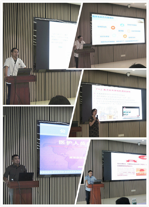 院长方如平教授作“调整好心态,做出彩员工”的专题讲座,方教授亲切地鼓励新员工要尽快融入新环境,尽快完成从学生到职业人身份的转换。医务处田曼主任通过一个个真实的案例向新员工传递了医疗安全与医疗纠纷的相关知识。纪委监察办公室张中主任通过一个个鲜活的案例向大家传递医德医风建设的重要性。预防保健科黄敏主任、医保物价办韶小娟主任、科研科刘倩琦主任、保卫科陈俊科长、信息科魏翎副科长、感染管理科樊天赐老师分别向新员工介绍了相关职能科室的工作职责和流程。南京市人民警察训练学校郁子舟教官为新员工树立了正确的防卫观。培训期间还邀请了南京大学政府管理学院李永刚教授和南京师范大学心理学院周红教授做了精彩授课。