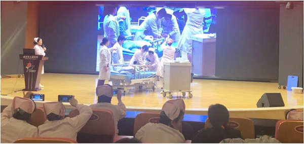 2018年1月23日下午,自拍偷拍 护理部在两院区组织了护理部工作总结暨安全警示教育视频会议。会议由护理部彭明琦副主任主持,首先急诊科蔡榕科护士长就“临床危重病人的风险识别与抢救配合”对全院护士进行培训,并由急诊团队为大家进行“团队急救配合情景演练”,生动形象地展示了护理急诊急救团队的整体风貌,使全院护士能够进一步掌握在紧急情况下如何对危重病人进行评估和救治。