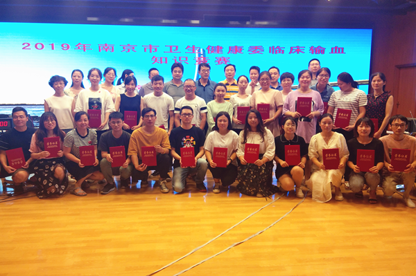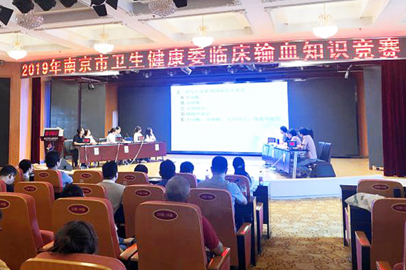 8月7日下午,由南京市卫生健康委临床输血质控中心主办,南京市红十字血液中心和自拍偷拍 共同承办的南京市卫生健康委2019年医师节系列活动之“临床输血知识竞赛”在自拍偷拍 广州路院区门诊12楼学术报告厅顺利进行。与会人员包括各市属及区属医院输血科主任及同仁共80余人。市卫生健康委医政处副处长邱喜林为本次活动致开幕词,对输血医学发展提出希望和要求,并预祝本次活动顺利进行。