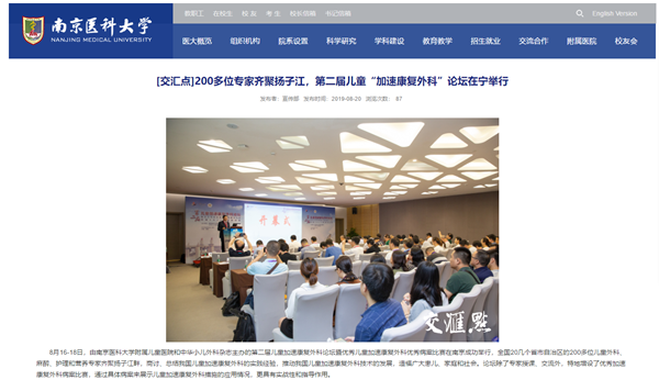 交汇点、南京医科大学:200多位专家齐聚扬子江,第二届儿童“加速康复外科”论坛在宁举行//jnews.xhby.net/v3/waparticles/7fda002d5708436da67a57947ffc4b06/Uh13ZYfnpkcTR4AC/1?from=singlemessage&isappinstalled=0