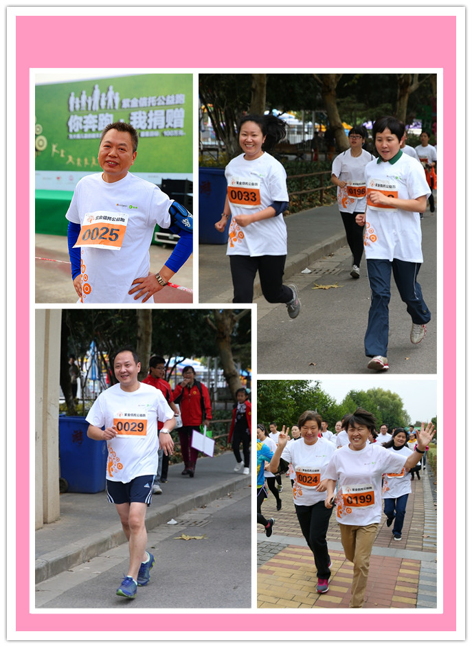 10月31日下午,由紫金信托有限责任公司、南京市慈善总会、自拍偷拍 医学发展医疗救助基金会、咕咚网主办,我的南京、当代公益联合主办,交通银行江苏省分行、立信事务所江苏分所、ME动协办的“你奔跑,我捐赠” 大型社会公益跑在南京绿博园火热开跑。20名职工志愿者在党委副书记、基金会副理事长范文雄带领下参加了本次活动。