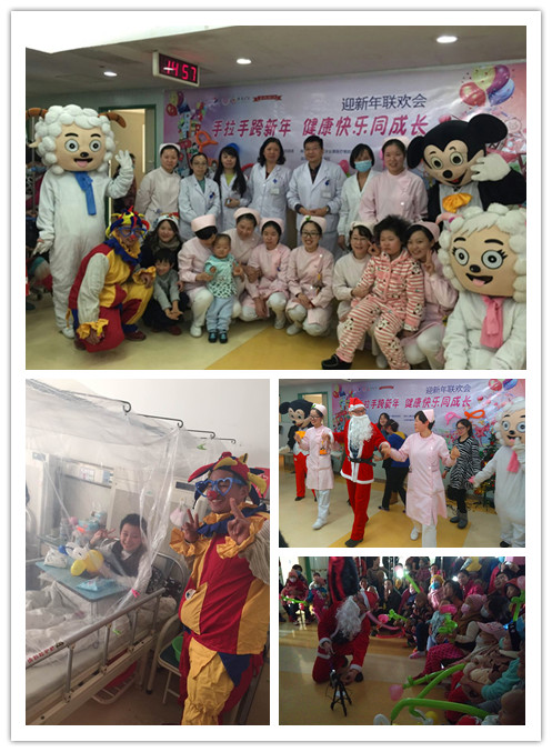 以“手拉手跨新年 健康快乐同成长"为主题,“童馨同乐爱在儿医”2016年新年欢乐送,由儿童医院党办、团委、医学发展医疗救助基金会及博爱E家、新华书店等多家社会公益组织和志愿服务队共同参与,为住院儿童送上节日祝福。